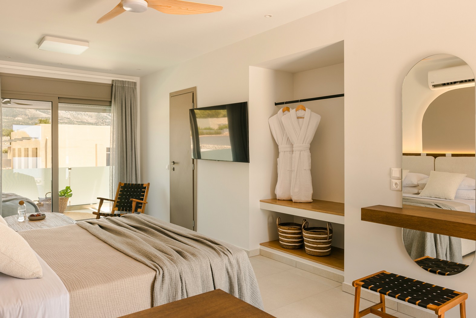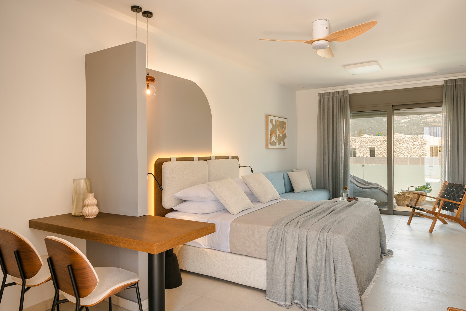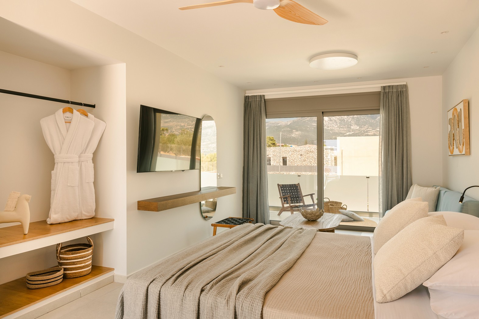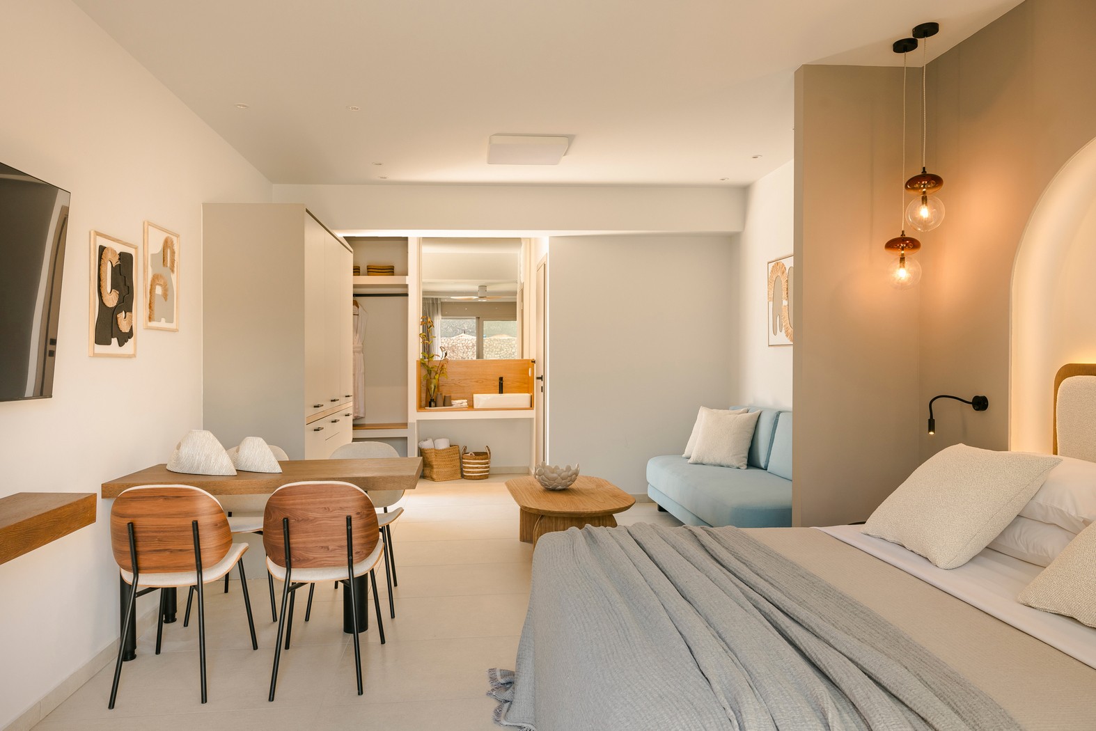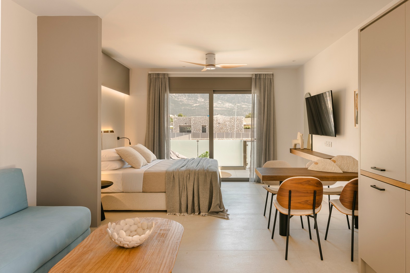 Το αποτέλεσμα ήταν σουίτες που συνδυάζουν αυθεντικό χαρακτήρα, άνεση και όμορφη αισθητική, έτοιμες να υποδεχθούν τους επισκέπτες.